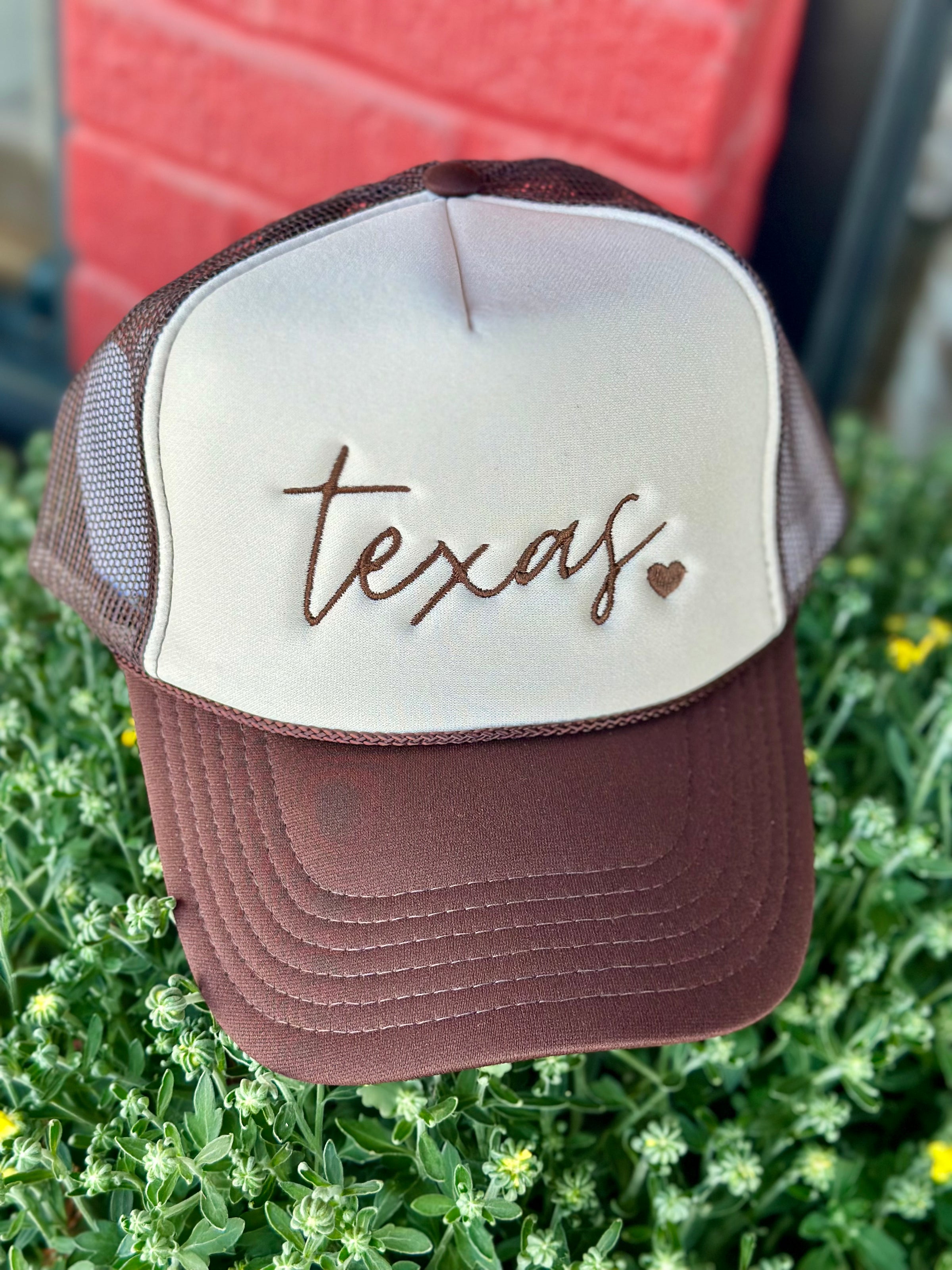 Texas our Texas<3 Be a true Texas girly with this brown and cream embroidered trucker hat.