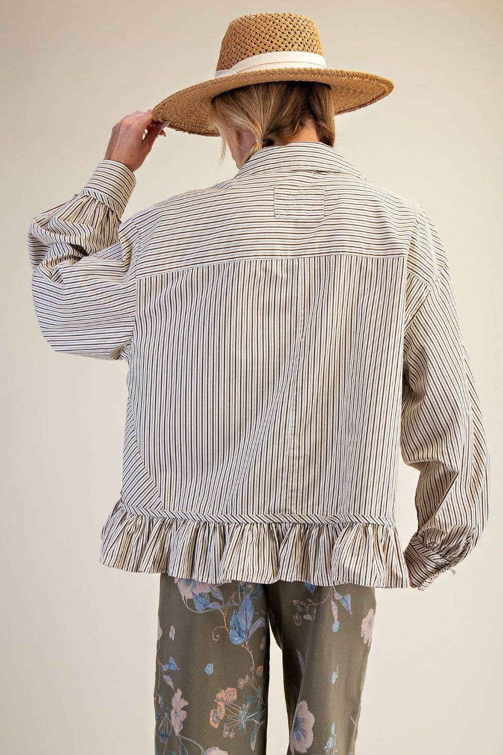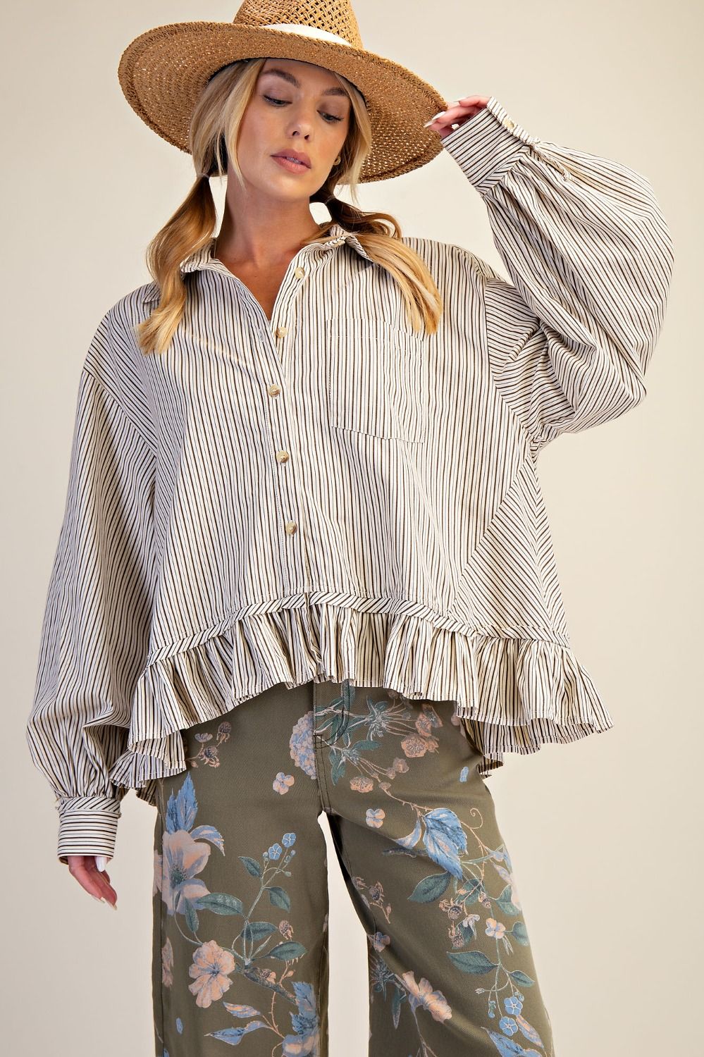 Description: STRIPED POPLIN BUTTON DOWN WASHED TOP